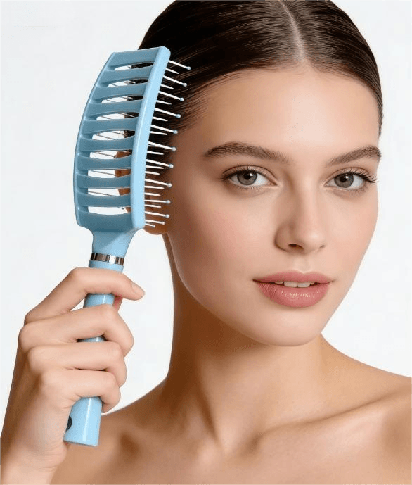 Crafted from high-quality PP plastic and flexible nylon bristles, this hair brush is built to withstand daily use without warping or shedding. The light blue glossy finish (as shown in the product image) adds a sleek, modern touch to any beauty collection, while the ergonomic handle with a hanging hole ensures easy grip and convenient storage. Measuring 2383CM, it’s the perfect size for travel or professional styling kits.